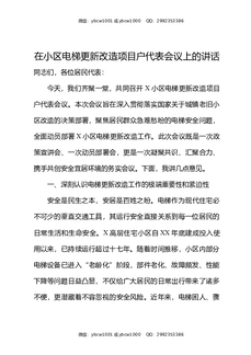 在小区电梯更新改造项目户代表会议上的讲话.docx