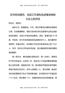在市劳动模范、先进工作者和先进集体表彰大会上的讲话.docx