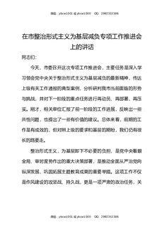 在市整治形式主义为基层减负专项工作推进会上的讲话.docx