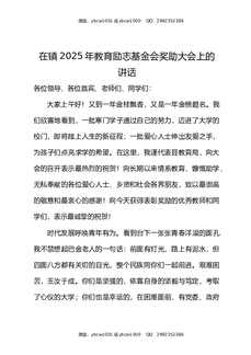 在镇2025年教育励志基金会奖助大会上的讲话.docx
