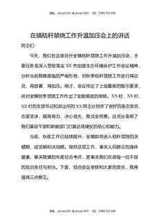 在镇秸秆禁烧工作升温加压会上的讲话.docx