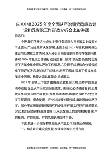 在XX镇2025年度全面从严治党暨党风廉政建设和反腐败工作形势分析会上的讲话.docx