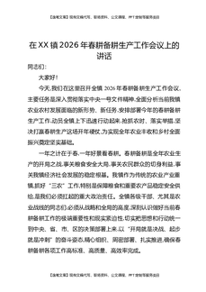 在XX镇2026年春耕备耕生产工作会议上的讲话.docx