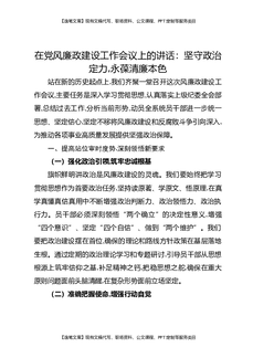 在党风廉政建设工作会议上的讲话:坚守政治定力,永葆清廉本色.docx