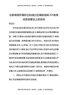 在教育局开展树立和践行正确Z绩观XX教育动员部署会上的讲话.docx