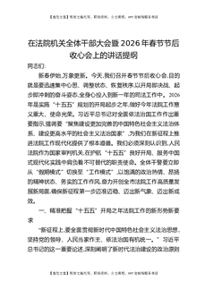 在法院机关全体干部大会暨2026年春节节后收心会上的讲话提纲.docx