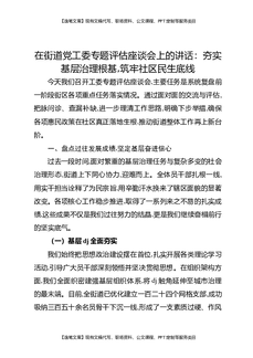 在街道党工委专题评估座谈会上的讲话:夯实基层治理根基,筑牢社区民生底线.docx