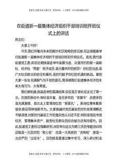 在街道新一届集体经济组织干部培训班开班仪式上的讲话.docx