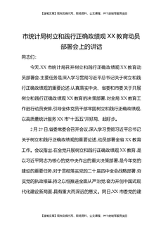 市统计局树立和践行正确Z绩观XX教育动员部署会上的讲话.docx