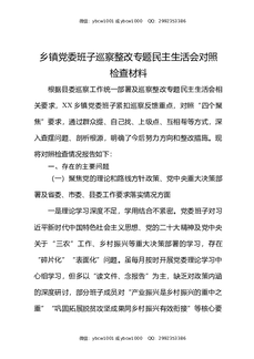 乡镇党委班子巡察整改专题民主生活会对照检查材料.docx