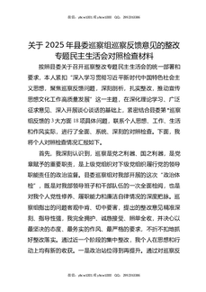 关于2025年县委巡察组巡察反馈意见的整改专题民主生活会对照检查材料.docx