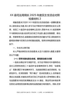 XX县司法局局长2025年度民主生活会对照检查材料2.docx