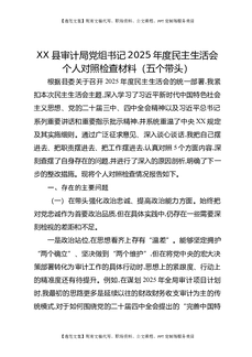 XX县审计局党组书记2025年度民主生活会个人对照检查材料(五个带头).docx