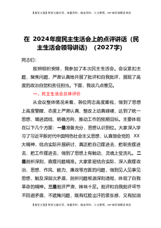在2024年度民主生活会上的点评讲话(民主生活会领导讲话).doc