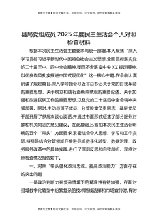 县局党组成员2025年度民主生活会个人对照检查材料.docx
