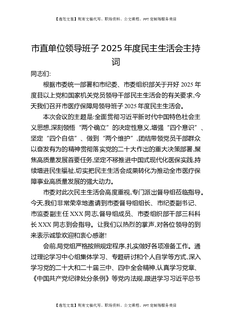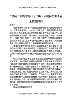 市委老干部局领导班子2025年度民主生活会上的主持词.docx