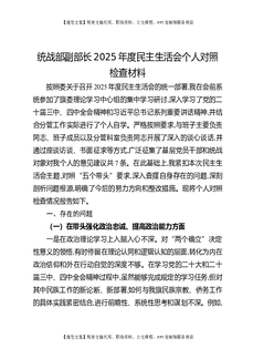 统战部副部长2025年度民主生活会个人对照检查材料.docx