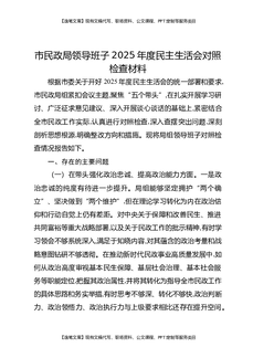 市民政局领导班子2025年度民主生活会对照检查材料.docx
