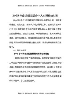 关于2025年度专题组织生活会个人检视剖析材料的汇报:深学细悟笃行筑牢思想根基,对标对表找差强化使命担当.docx