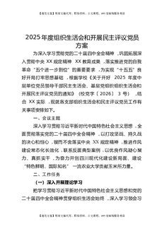 2025年度组织生活会和开展民主评议党员方案.docx