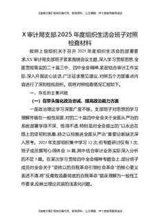 X审计局党支部2025年度组织生活会班子对照检查材料.docx