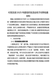 村党支部2025年度组织生活会班子对照检查材料.docx