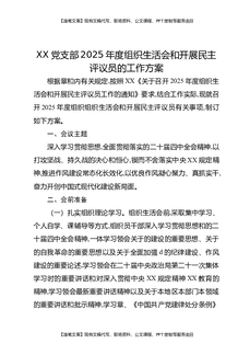 XX党支部2025年度组织生活会和开展民主评议党员的工作方案.docx