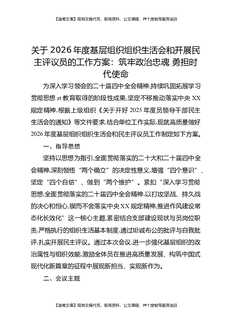 关于2026年度基层组织组织生活会和开展民主评议员的工作方案:筑牢政治忠魂勇担时代使命.docx