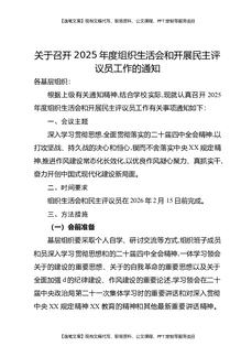 关于召开2025年度组织生活会和开展民主评议党员工作的通知.docx