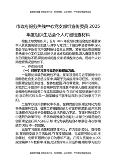 市政府服务热线中心党支部组宣传委员2025年度组织生活会个人对照检查材料.docx