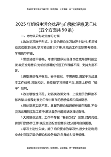 2025年组织生活会批评与自我批评意见汇总(五个方面共50条).docx