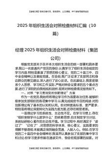 2025年组织生活会对照检查材料汇编(10篇).docx