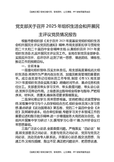 党支部关于召开2025年组织生活会和开展民主评议党员情况报告.docx