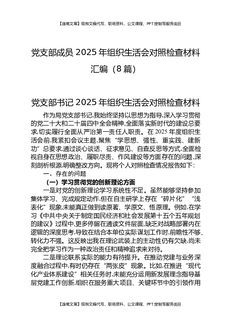 党支部成员2025年组织生活会对照检查材料汇编(8篇).docx