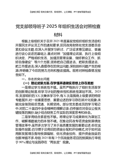 党支部领导班子2025年组织生活会对照检查材料.docx