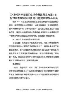 XX2025年度组织生活会整改落实方案:对标对表查摆短板弱项,笃行笃实筑牢战斗堡垒.docx