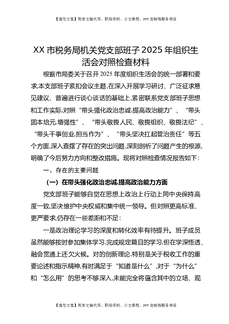 XX市税务局机关党支部班子2025年组织生活会对照检查材料.docx
