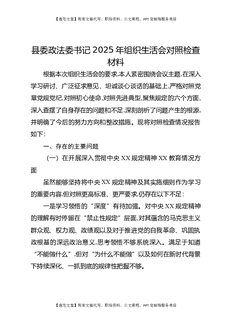 县委政法委书记2025年组织生活会对照检查材料.docx