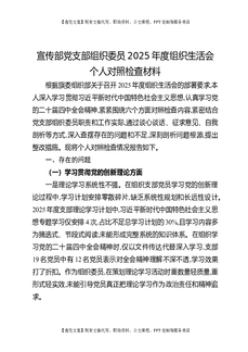 宣传部党支部组织委员2025年度组织生活会个人对照检查材料.docx