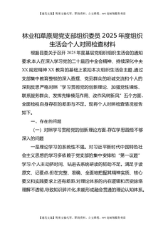 林业和草原局党支部组织委员2025年度组织生活会个人对照检查材料.docx