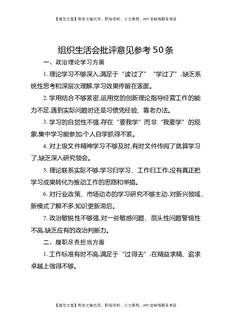 组织生活会批评意见参考50条.docx
