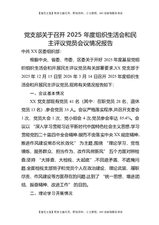 党支部关于召开2025年度组织生活会和民主评议党员会议情况报告.docx
