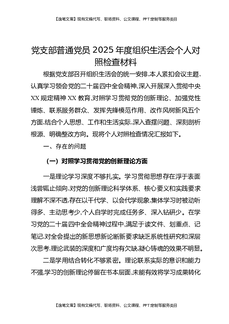 党支部普通党员2025年度组织生活会个人对照检查材料.docx