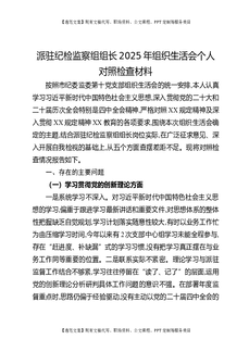 派驻纪检监察组组长2025年组织生活会个人对照检查材料.docx
