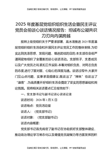 2025年度基层党组织组织生活会暨民主评议党员会前谈心谈话情况报告:坦诚布公凝共识,刀刃向内谋跨越.docx