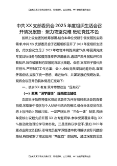 中共XX支部委员会2025年度组织生活会召开情况报告:聚力攻坚克难,砥砺党性本色.docx