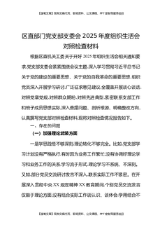 区直部门党支部支委会2025年度组织生活会对照检查材料.docx