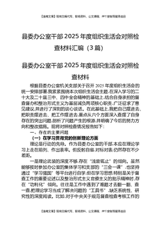 县委办公室干部2025年度组织生活会对照检查材料汇编(3篇).docx