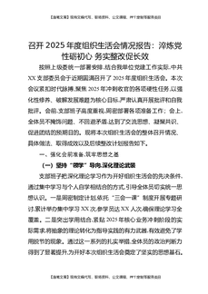 召开2025年度组织生活会情况报告:淬炼党性砺初心,务实整改促长效.docx