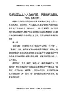组织生活会上个人自查问题、原因剖析及整改措施(通用版).docx